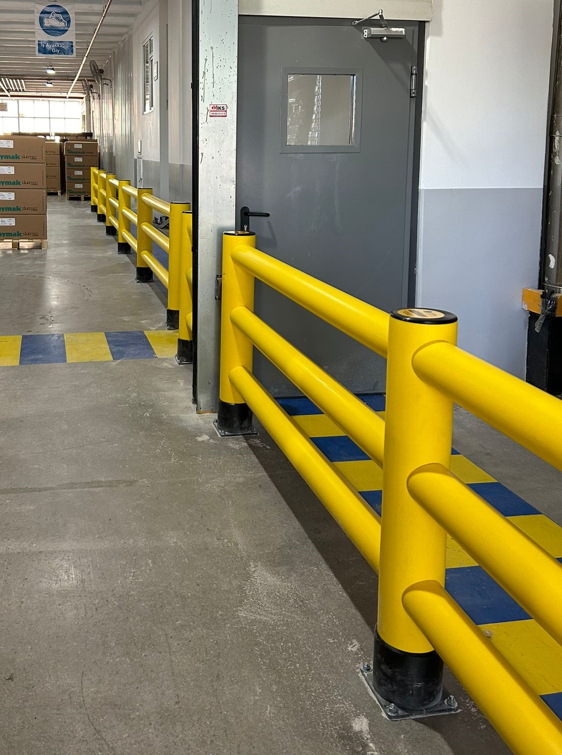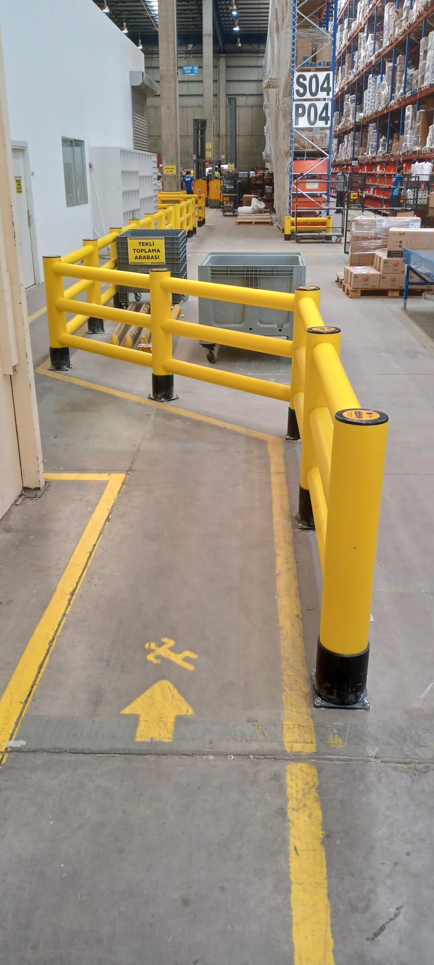Çalışanların ortamını güvenli hale getirmek için forklift ve yaya trafiğinin ayrılması ve personel için ayrı bir yürüyüş alanı gereklidir.